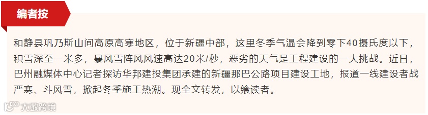面对极端气候与地质难题的双重挑战,建设者们不畏艰难,以科学严谨的态度和创新的施工方案,逐一攻克了施工过程中的重重难关。华邦建投集团那巴公路5标项目经理刘吉祥说:“隧址区冬季气候恶劣,近日最低气温-42℃,为应对恶劣环境,我们对隧道出口施工便道增设了防雪廊道和临时挡雪板,确保施工材料正常供应;拌和站采用全封闭保温,料仓加热系统采用地暖和墙暖结合的方式,棚顶敷设电伴热带,确保拌和站温度满足施工要求,目前混凝土施工温度已达到15℃左右;隧道各洞口进行封闭,洞内施工温度已达到15℃以上。”