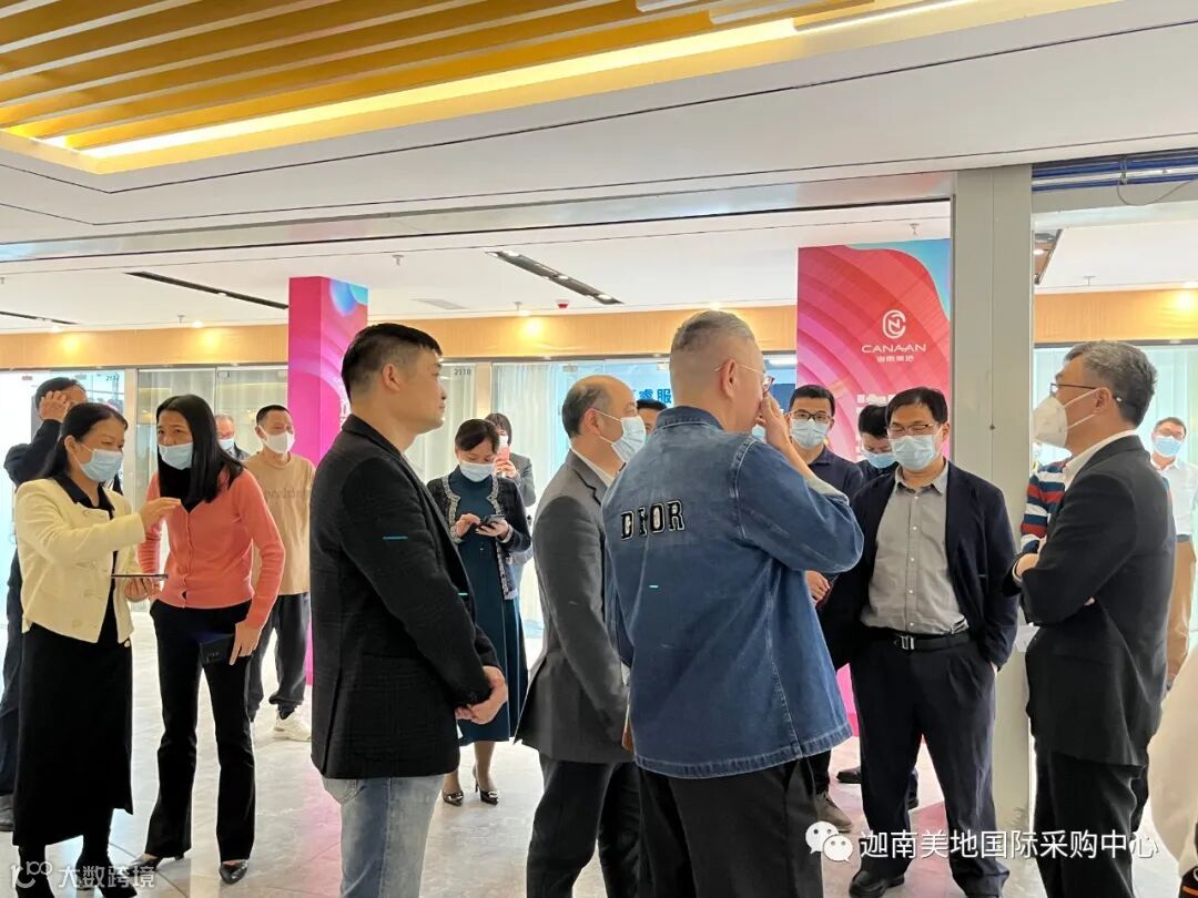 2023年2月21日下午,广州市越秀区区委书记郭昊羽带队,携其他区领导、及相关部门负责人,在矿泉街道党工委温书记等街道领导的陪同下,莅临迦南美地国际采购中心,迦南美地董事长区俊宁、总经理卢海林接待并介绍,就广州中非外贸市场应该如何转型发展、专业市场经营现状问题进行汇报。