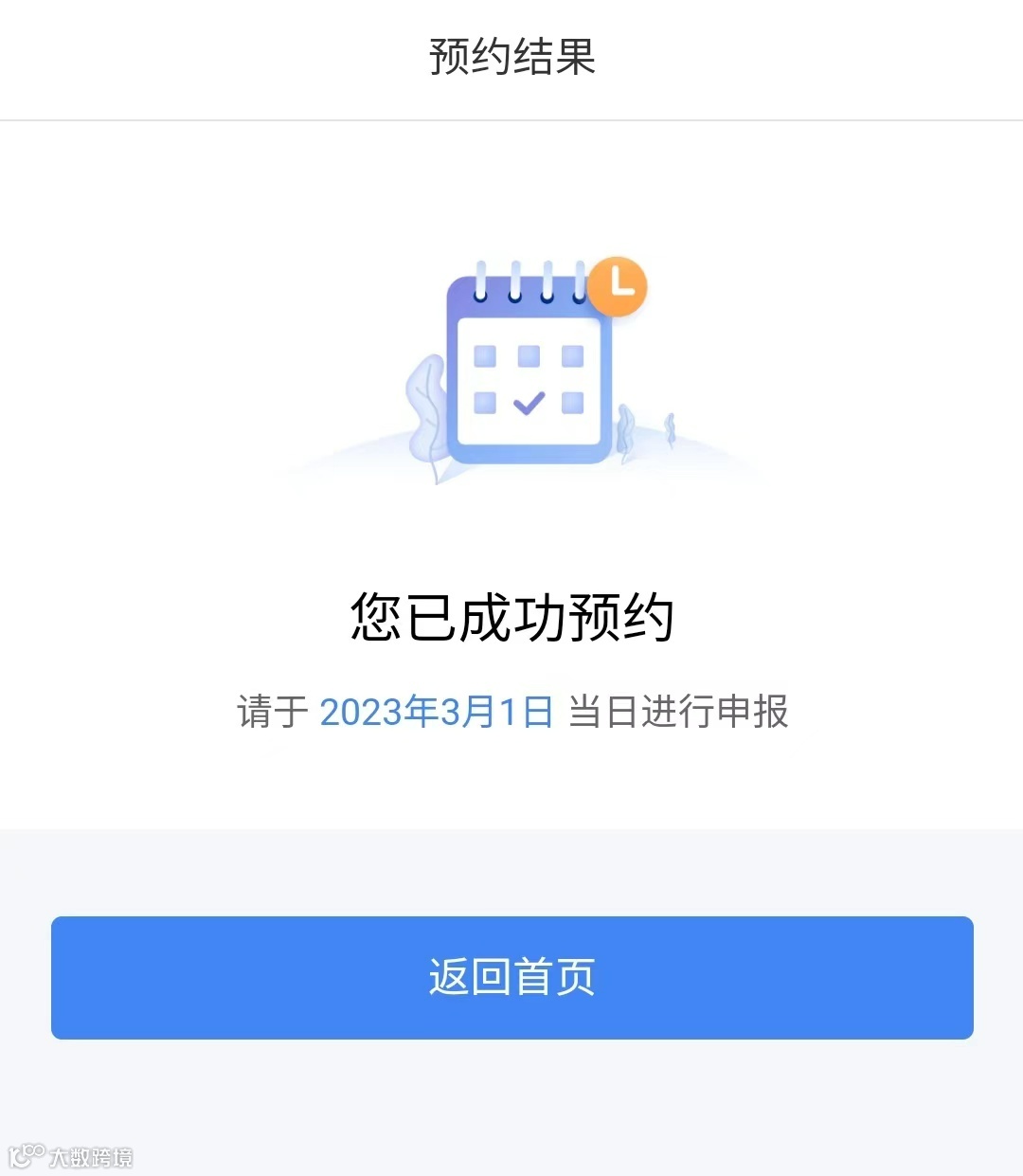 第③步:提交成功后,系统将会显示“您已成功预约”页面,纳税人即可在预约日期当天办理2022年度汇算申报。此外,还可以在手机个人所得税APP首页年度汇算专题栏查看预约情况。