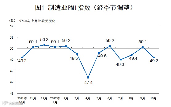 中国物流与采购联合会、国家统计局服务业调查中心公布了10月份中国采购经理指数。受国内疫情多发散发等影响,10月份中国制造业采购经理指数有所回落。