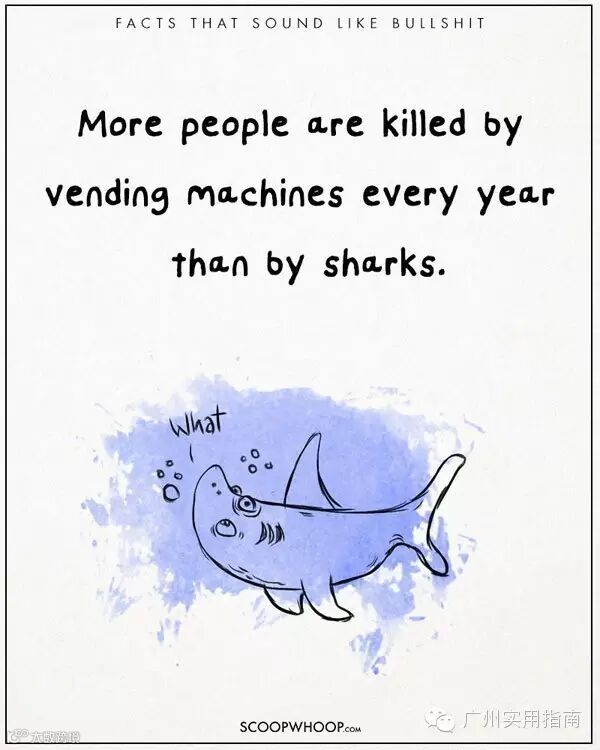 7.每年被自动贩卖机杀掉的人其实比被鲨鱼吃掉的人还多。