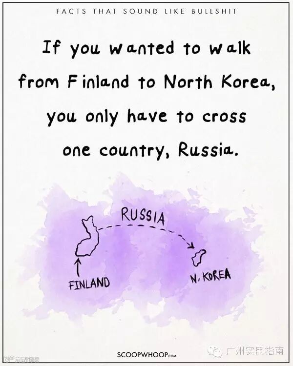 4.如果想从芬兰走到北韩,你只需要通过一个国家,那就是俄国。