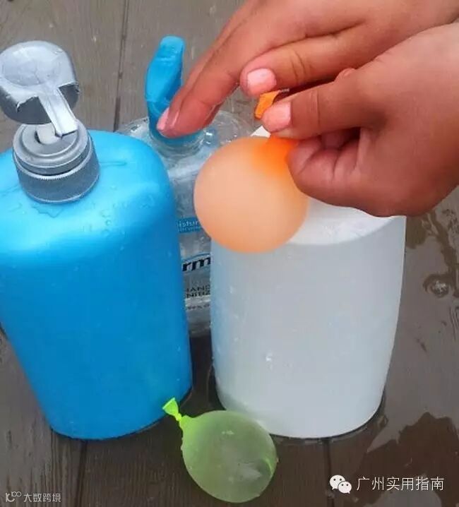 针对喜欢玩水球的小孩,用有压头的沐浴乳或洗发精当水龙头给他们灌水球
