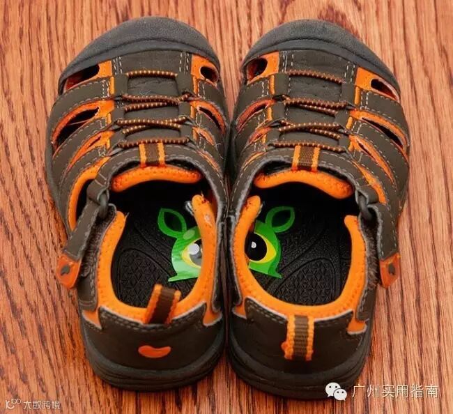 把贴纸剪成两半贴在鞋子里,让小朋友知道怎么分辨左右脚