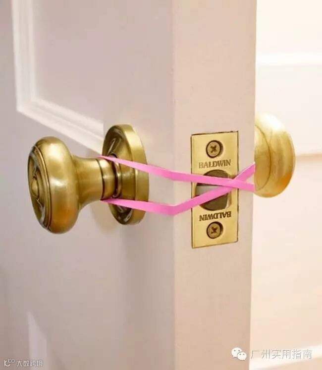 门锁上交叉绑条橡皮筋,不怕被反锁