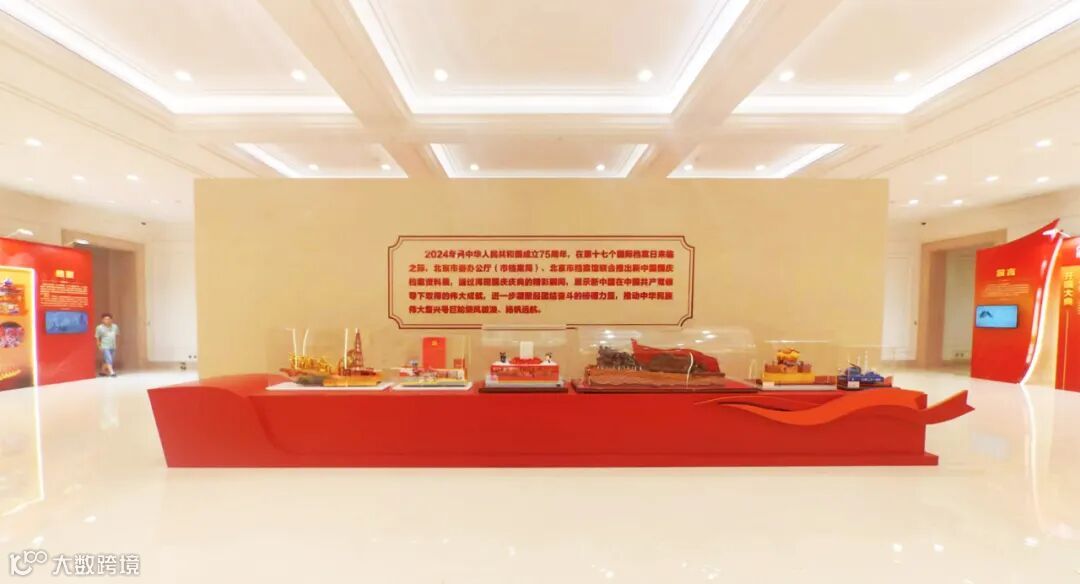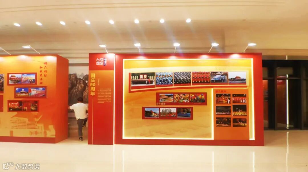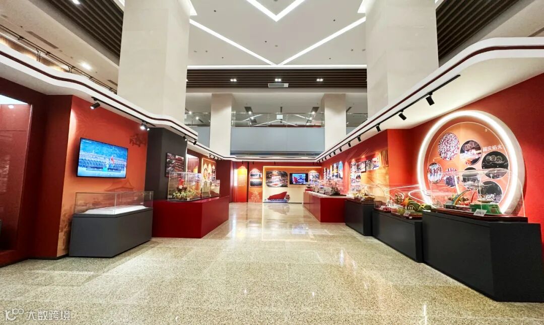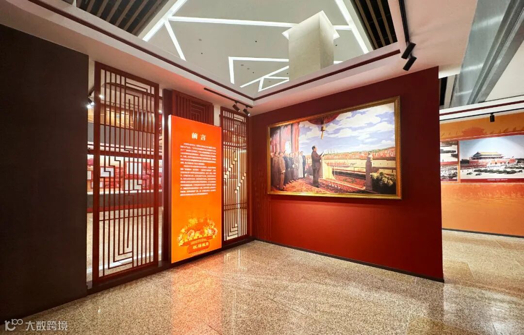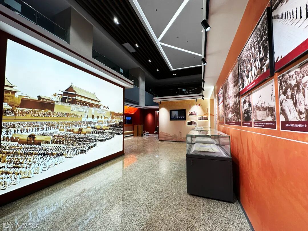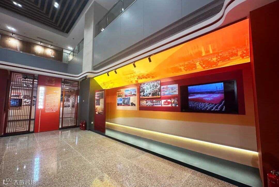 展厅色彩以国旗红为主色,搭配深咖、橙红和米黄色,营造庄重的庆典氛围。经过精心设计,我们在有限的展示空间内,巧妙地将灯光与版面形式融合,在视觉上实现了美观与艺术的双重提升。