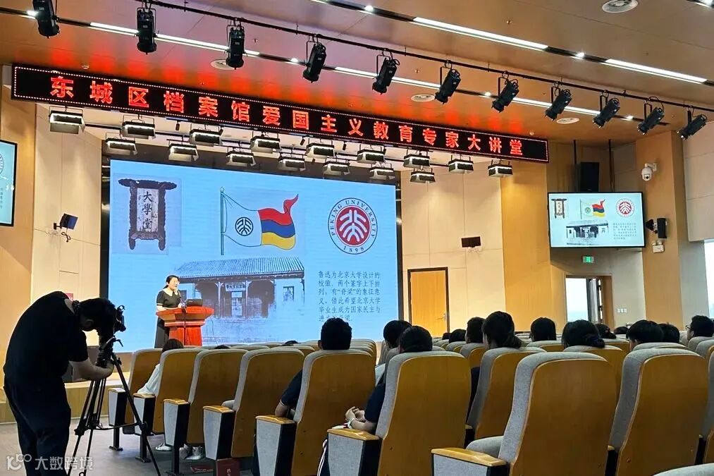 笔硕集团承担了本展览的展厅设计与布展、文创设计及制作,并作为沟通桥梁,促成了东城区档案馆和北大红楼的精彩联动,开展当日,北大红楼资深宣讲员王丽云为北京市第一零九中学、培新小学师生主讲了《北大红楼里的60后,70后,80后,90后》讲座。王丽云老师以生动的语言和丰富的案例,为大家讲述了北大红楼里的历史故事和人物传记,实践了爱国主义精神的传承和发扬。