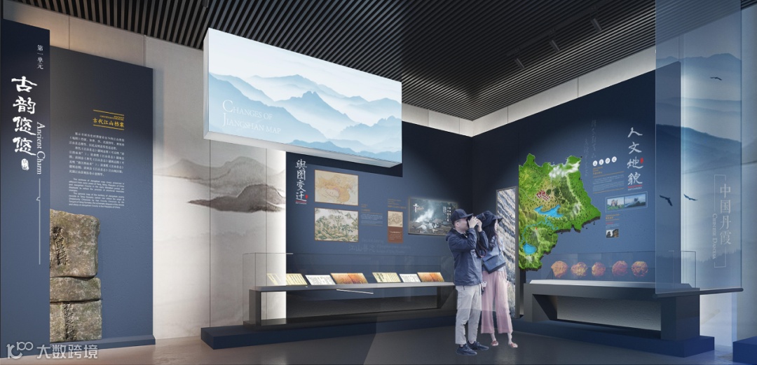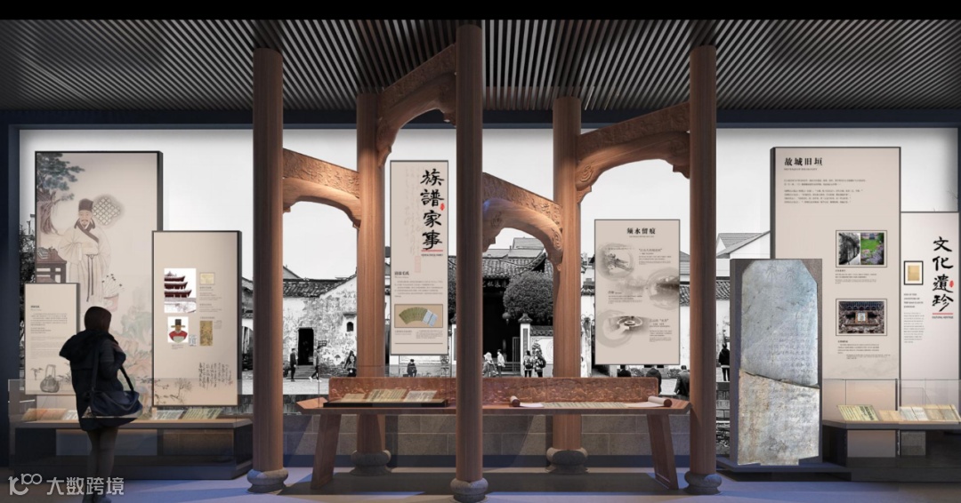 以县志蓝为主色调,以清漾毛氏祖宅梁柱场景复原、江山方言互动展项等立体展陈语言活化档案文献,解读千秋历史。