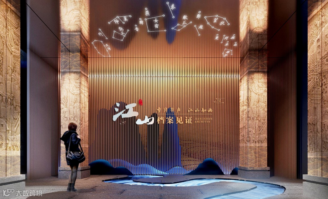 以如诗如画、大音希声的设计,带公众步入江山档案殿堂。须江形态投影总揽江山历史沿革,流金岁月。