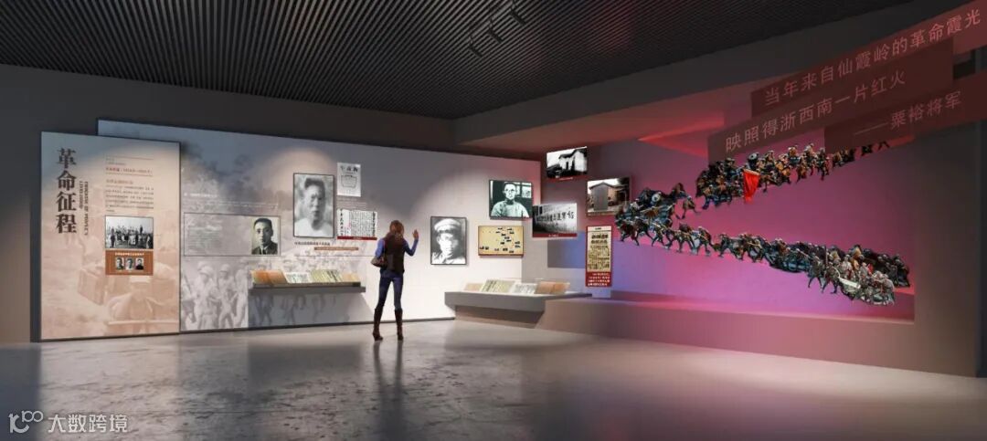 以沃土棕为主色调,打破平铺直叙的展陈方式,以营救盟军飞行员创意影幕、红军挺进师艺术群雕与实物阵列解读江山不朽的红色档案。
