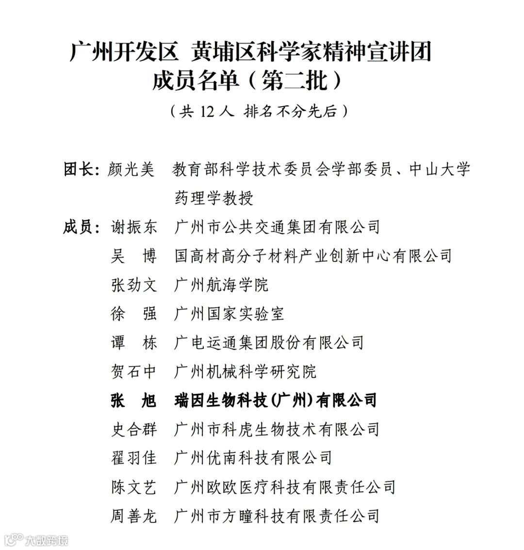 近日,第二批广州开发区、黄埔区科学家精神宣讲团名单公布,瑞因生物 CEO 张旭荣列其中。该宣讲团由区科协、区科技创新局、区科技局、区教育局联合组建,在首批基础上吸纳了 2025 年广州市 “优秀科技工作者” 等辖区高层次人才,旨在弘扬科学家精神,激励青少年树立科技报国理想,凝聚社会创新力量,营造尊重科学与人才的良好氛围。