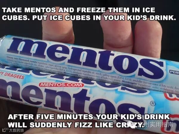 13.把曼陀珠冷冻然后加到孩子们正要喝的汽水里,然后静静等待。