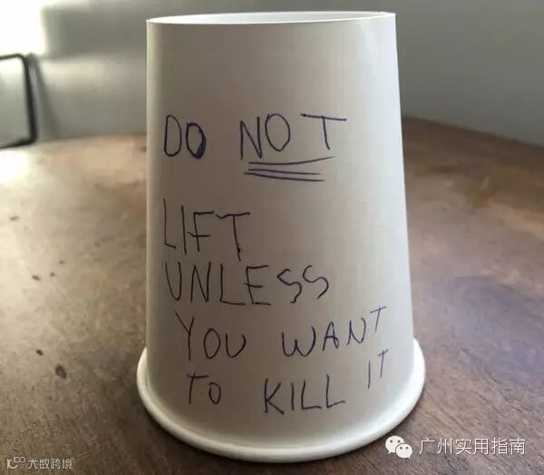 7.放一个杯子在桌上,然后留言:“别拿开它,除非你可以打死牠!”
