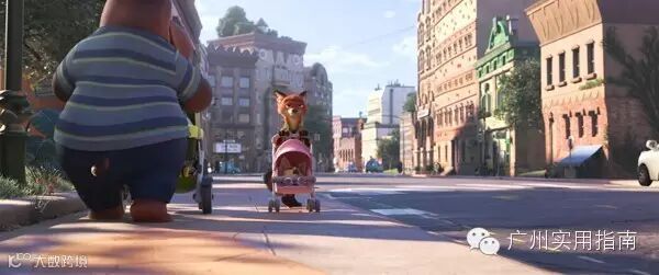 2.狐狸尼克推著婴儿车走在路上,迎面而来另一台婴儿车