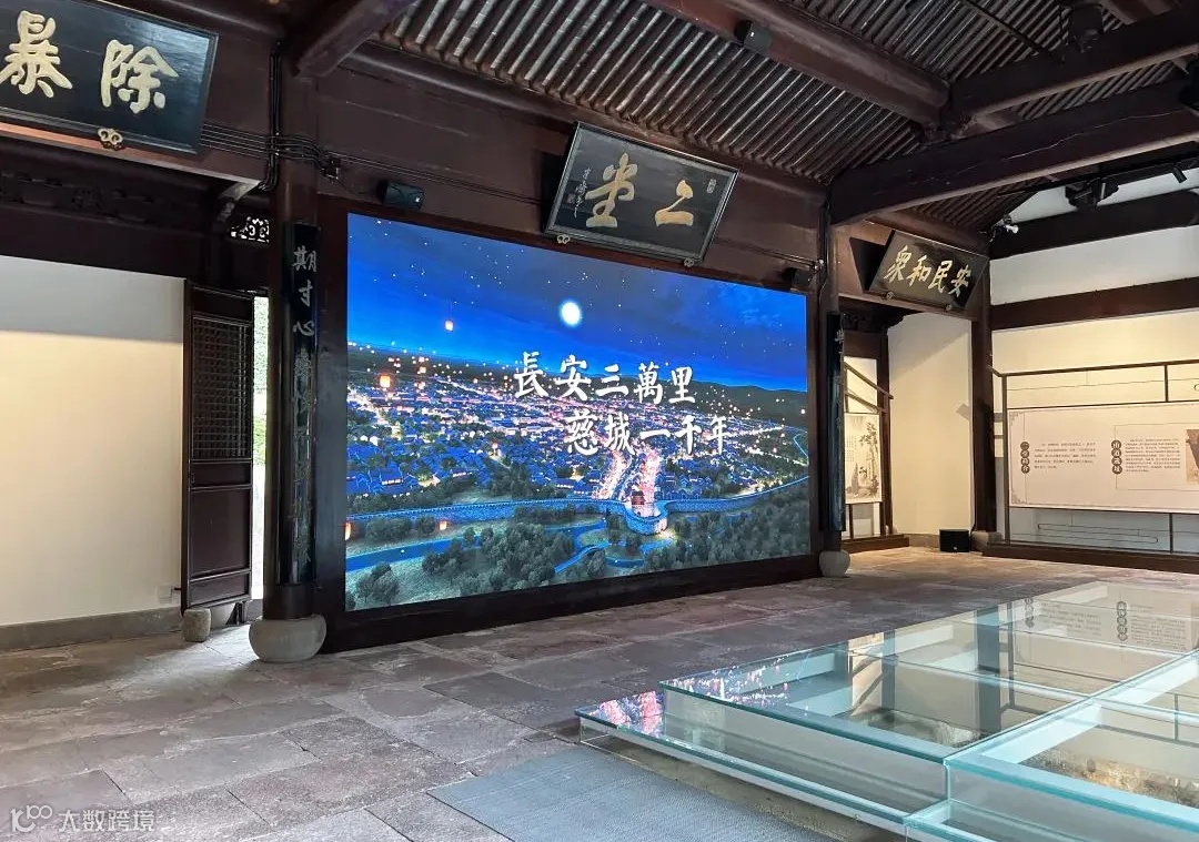 走进二堂,LED高清大屏影像真实自然,播放着《长安三万里,慈城一千年》短视频,生动形象地展示慈城第一任县令房琯对慈城历史发展做出的重要贡献,直观明了的让游客认识慈城的历史和现实。