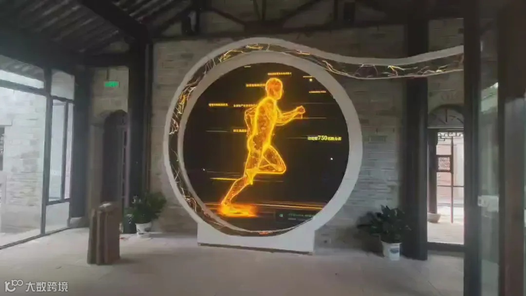 在廉洁文化版本厅,圆形屏+丝带屏的组合让人眼前一亮。多媒体数字人奔跑的形象,象征着廉政建设一直在路上。