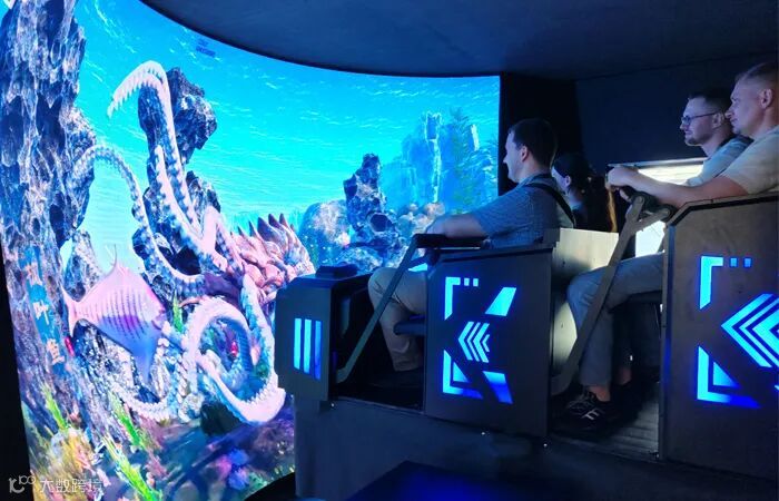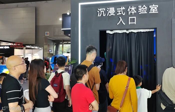 作为展位最火热的区域,沉浸式体验室人气一直居高不下,观众们排队等候体验。3D内球幕画面,环绕立体的场景音效,带加速、俯冲等功能的互动座椅,视觉、听觉、感官全方位的震撼冲击,现场尖叫不停!