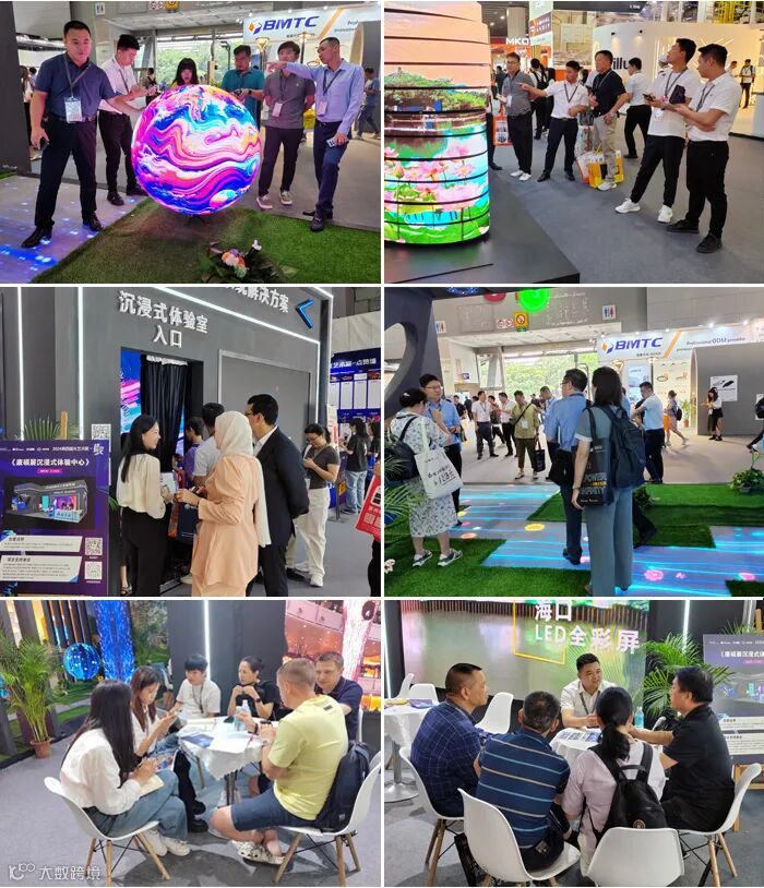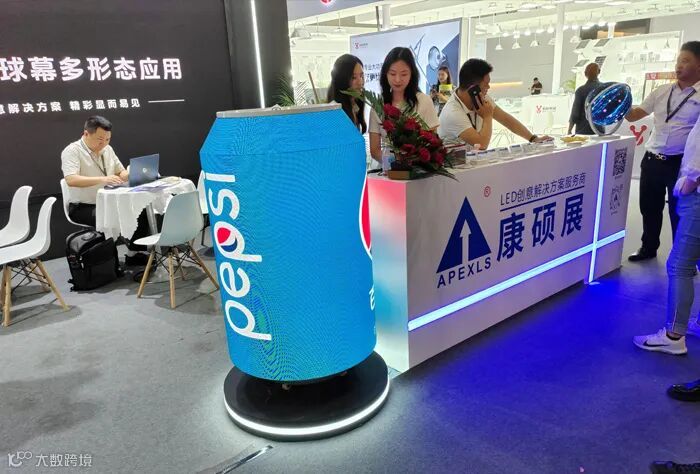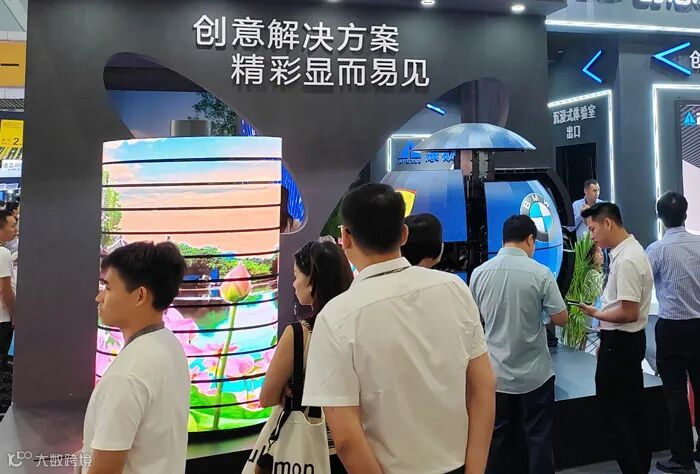 创意展示区展出球形屏、地砖屏、立方屏、旋转屏、伸缩球、易拉罐等产品,独特造型增添别样美感。来自全球各地的客户、参展商汇聚创意展示区,现场“零距离”沟通交流。