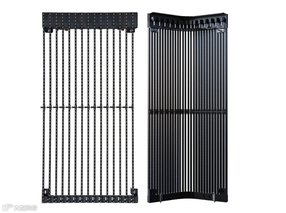 条幕屏以条形结构设计与超高通透率(最高达 90%)成为建筑美学新宠:可灵活拼接为弧形、波浪形等创意造型,安装于外墙时不遮挡采光,夜晚则化身绚丽媒体立面,为城市空间注入科技魅力。
