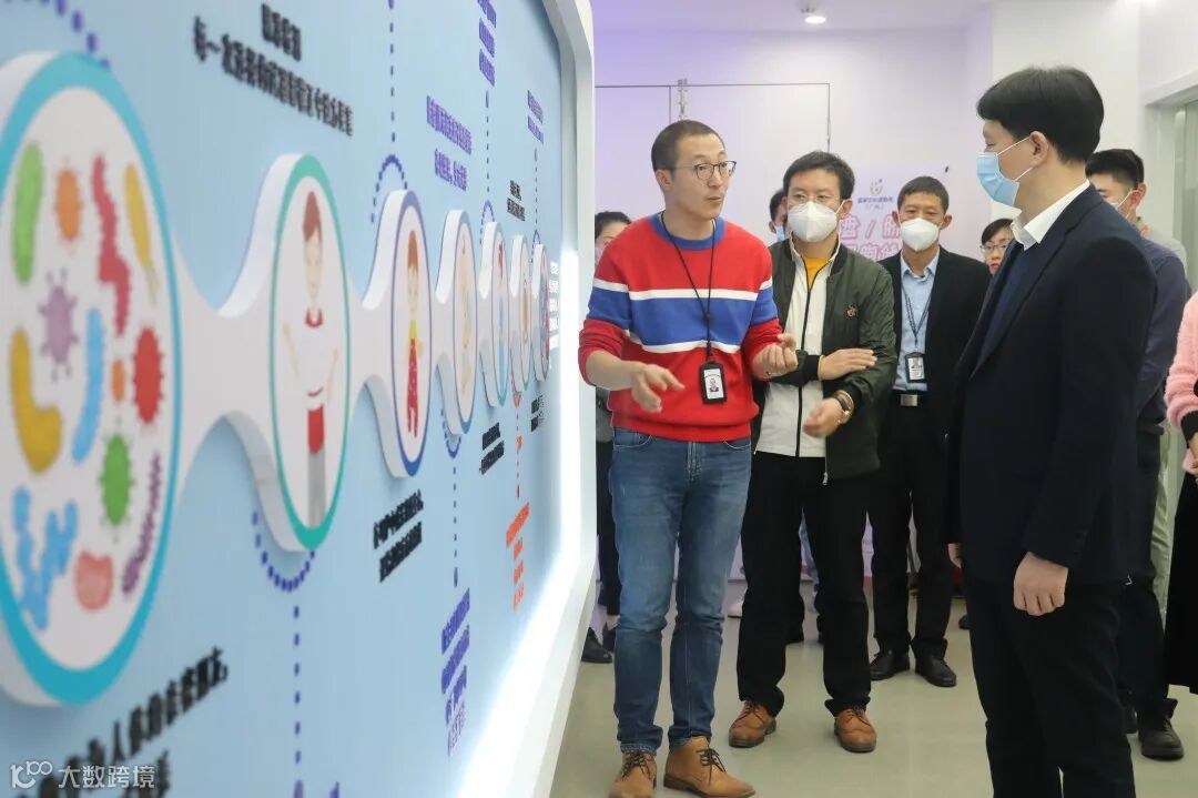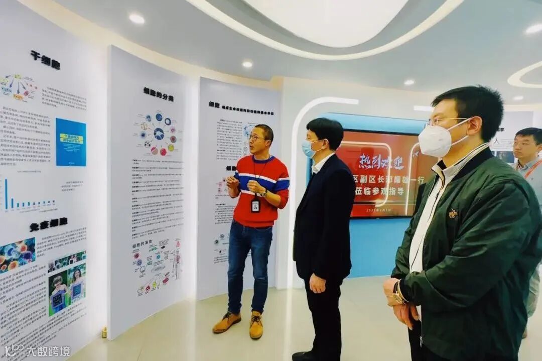 在张旭等人的陪同下,邓耀雄一行参观瑞因生物科普展厅、分子生物学实验室、“B+A”级干细胞GMP工厂、生物样本库、生物信息大数据中心。张旭分享了瑞因集团在基因医学、感染诊断、干细胞与免疫细胞等技术的开发和临床应用等方面最新的科学研究与成果转化。