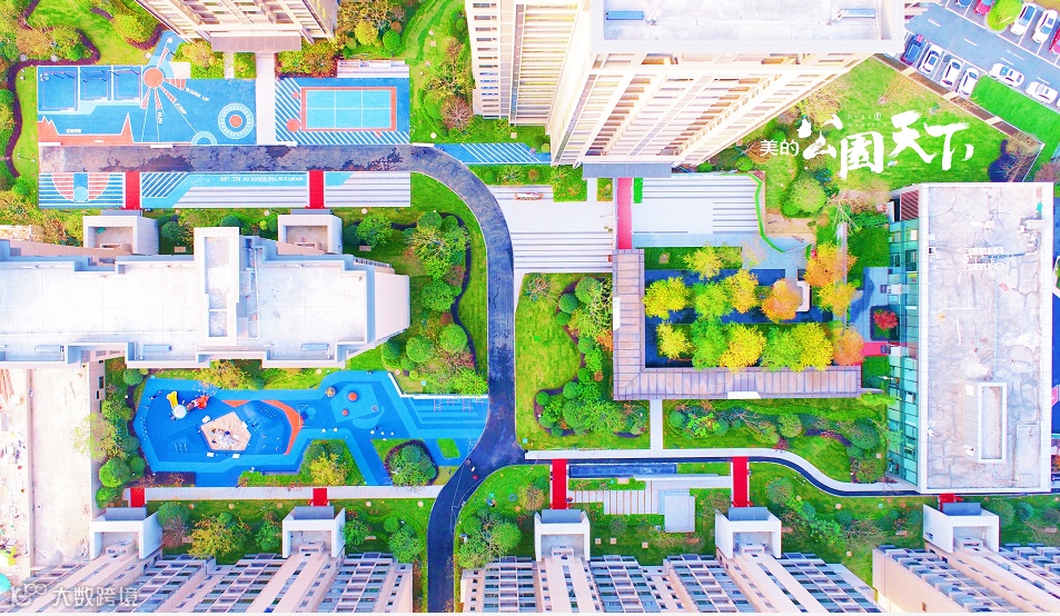 美的公园天下在园林设计上的打造,以业主生活为中心,从“全龄、健康、关怀”三大视角
