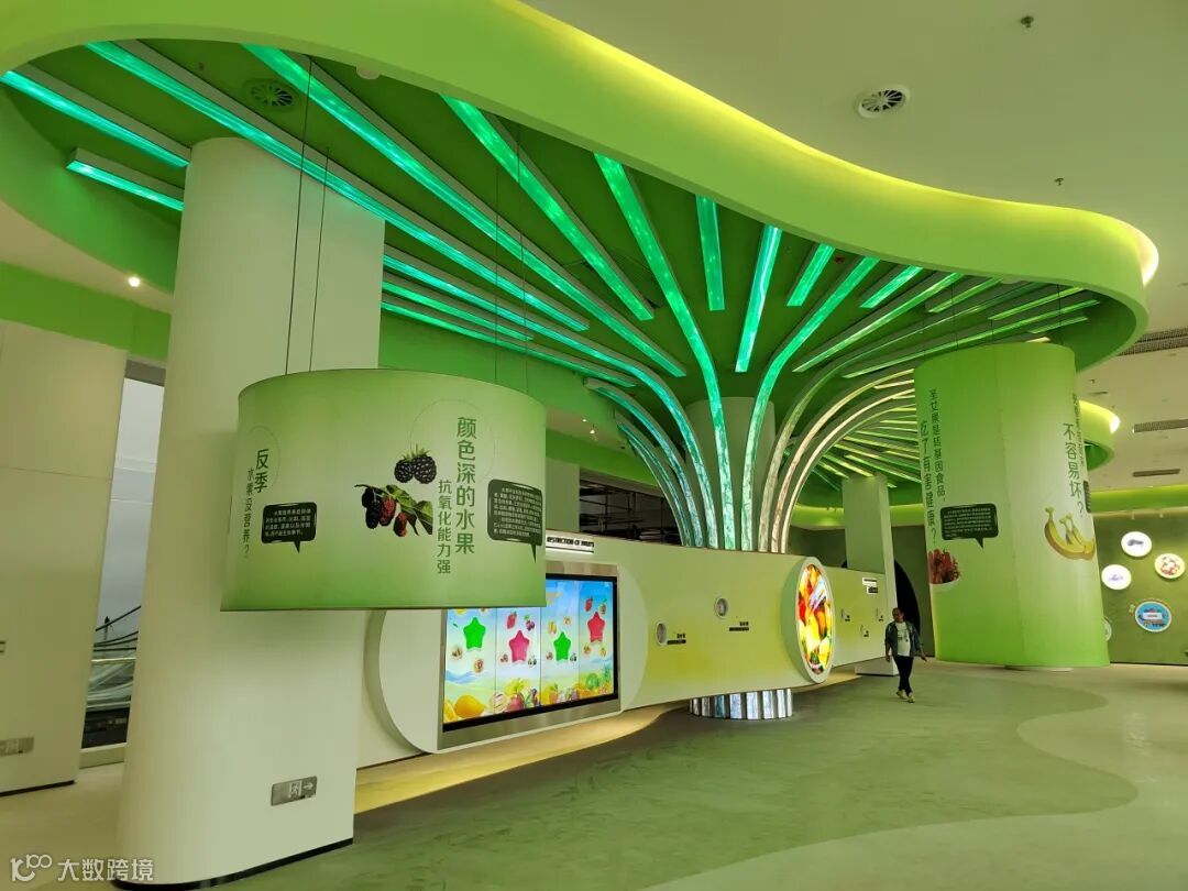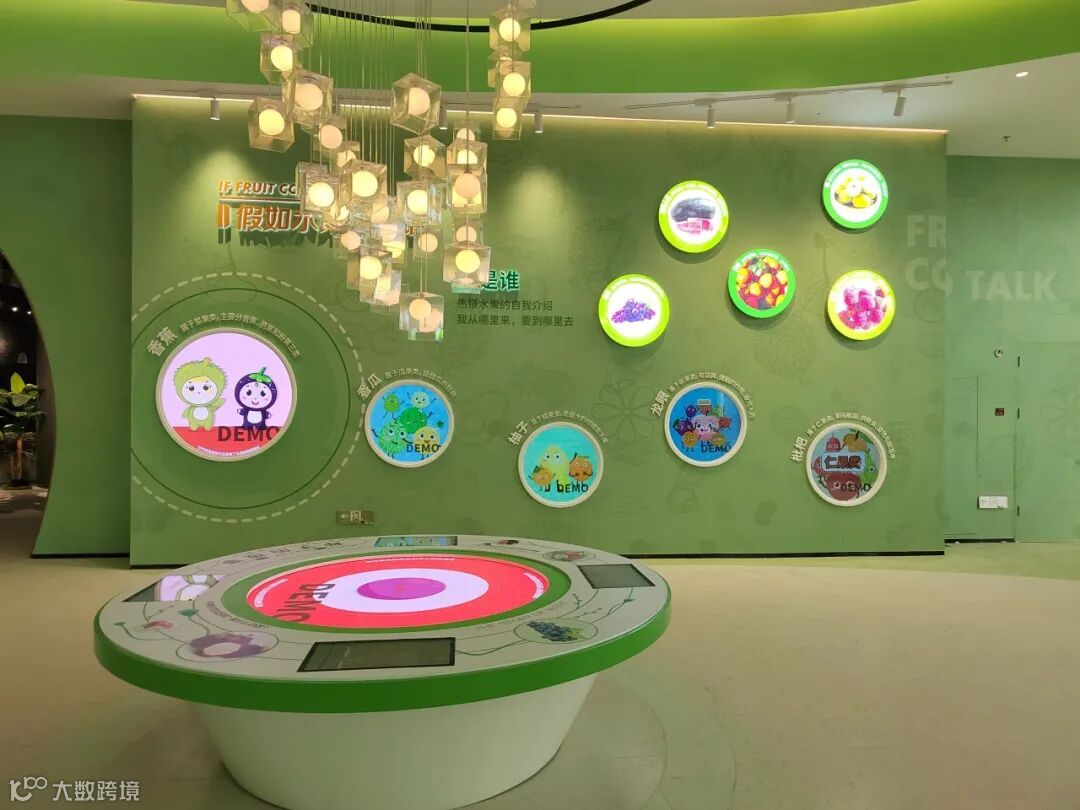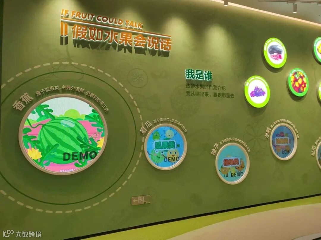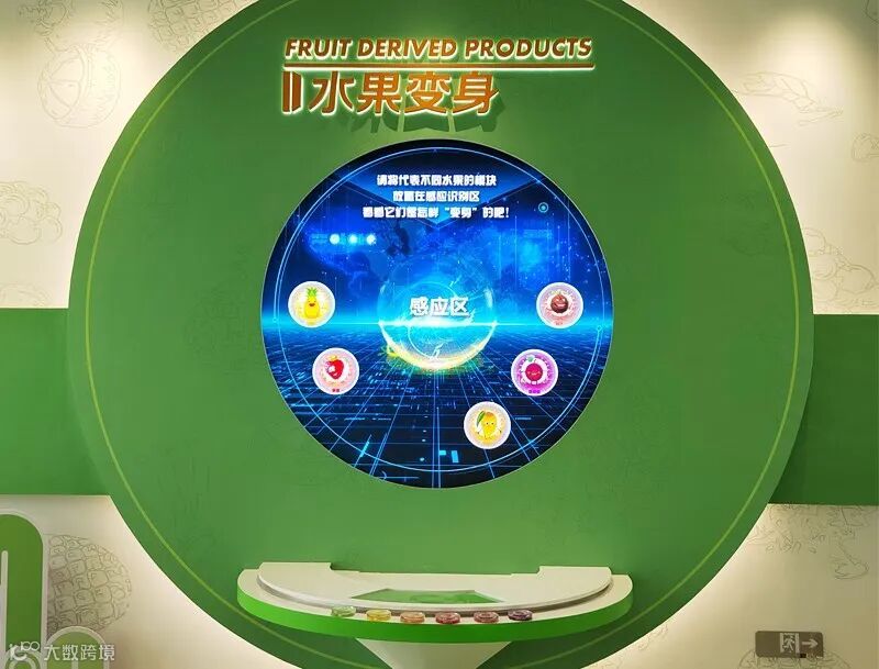 通过LED圆形屏,访客可观看各类热带水果们的自我介绍综述和影片,让科普变得更加生动有趣。