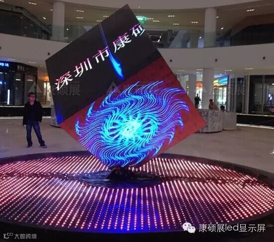 中山星光联盟集团“光立方•LED城”LED立方体,采用P6点间距,将六块边长1.92米的显示屏无缝拼接成一个LED魔方,360°全视角播放,并且可沿轴旋转,个性十足。立方体底部安装了一块圆形的LED条幕屏,采用P80的点间距,防护等级达到IP68,与LED立方体相互辉映,形成美轮美奂的景象。