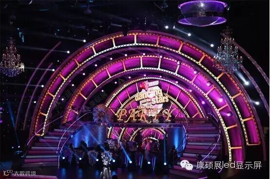 2014年12月,由东方卫视倾力打造的《与星共舞》开播,该节目邀请了昆凌、何洁、温岚等众多明星嘉宾亮相舞台,参赛明星横跨影视、音乐和体育等各行各业,虽然大家都不是专业舞者,但也各具风格,展开激烈角逐,收视率飞速上升。细心的观众会发现,舞台上多块创意LED显示屏由深圳康硕展电子有限公司提供。其中两块拱形LED显示屏面积为50平米,半圆形LED显示屏面积为46平米,均为室内P10表贴显示屏, 鲜艳细腻的显示效果,搭配现场灯光,为舞台增色不少。