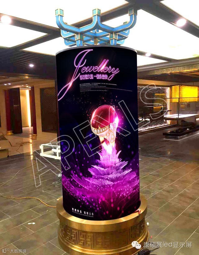萃华金店选中康硕展即是对康硕展产品的品质的肯定与技术信赖。LED圆柱屏作为康硕展的专利产品,是康硕展创意显示屏系列最受欢迎的产品之一。LED圆柱屏具有薄型、轻量、像素密度高、视角大、圆曲率高、安装成本低等特性,可采用落地安装或吊装方式。其规格、直径、高度均可根据客户需求定制,既可烘托现场气氛,亦可播放广告内容,满足人们对完美视觉效果的追求。