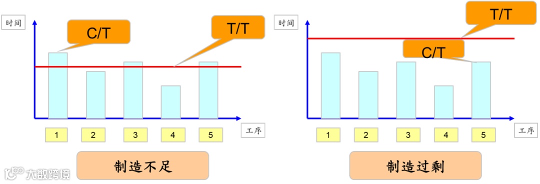 ✦当瓶颈工序C/T<T/T时,制造过剩;