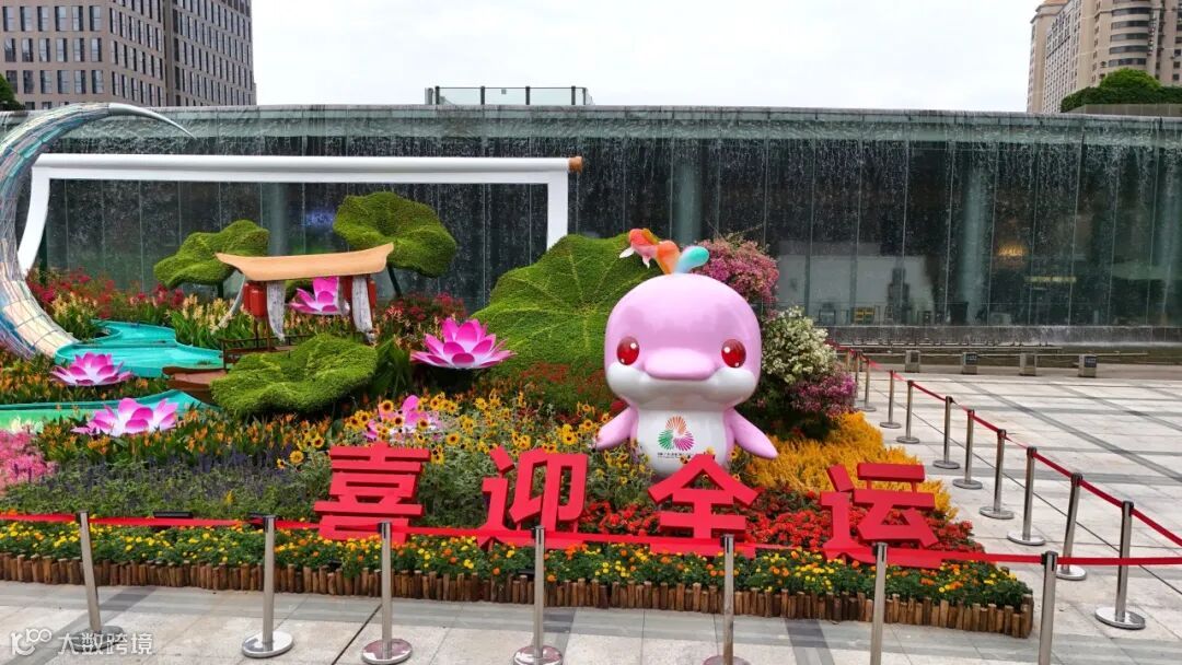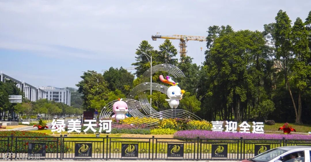 该作品位于广州市云台花园,高达12米的《花开盛世》绿雕以“礼盒”为造型,饰以全运会图案。中心环绕的跑道造型诠释体育精神,基座繁花簇拥,吉祥物点缀其间,全运会氛围拉满。