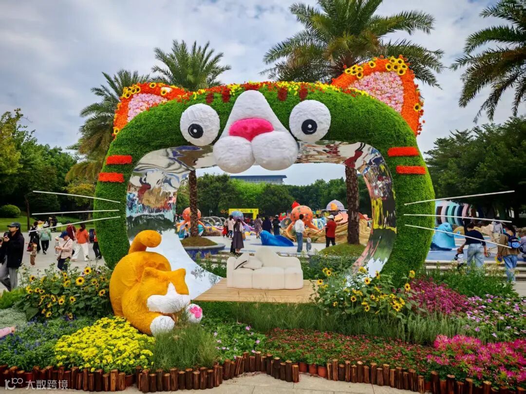 该作品以传统吉祥语“家肥屋润福旺人顺”为主题,将“猫肥”与“家润”关联,将萌宠治愈感、花艺美学与传统祝福深度融合,打造集观赏、互动、打卡功能于一体的温馨景观空间。
