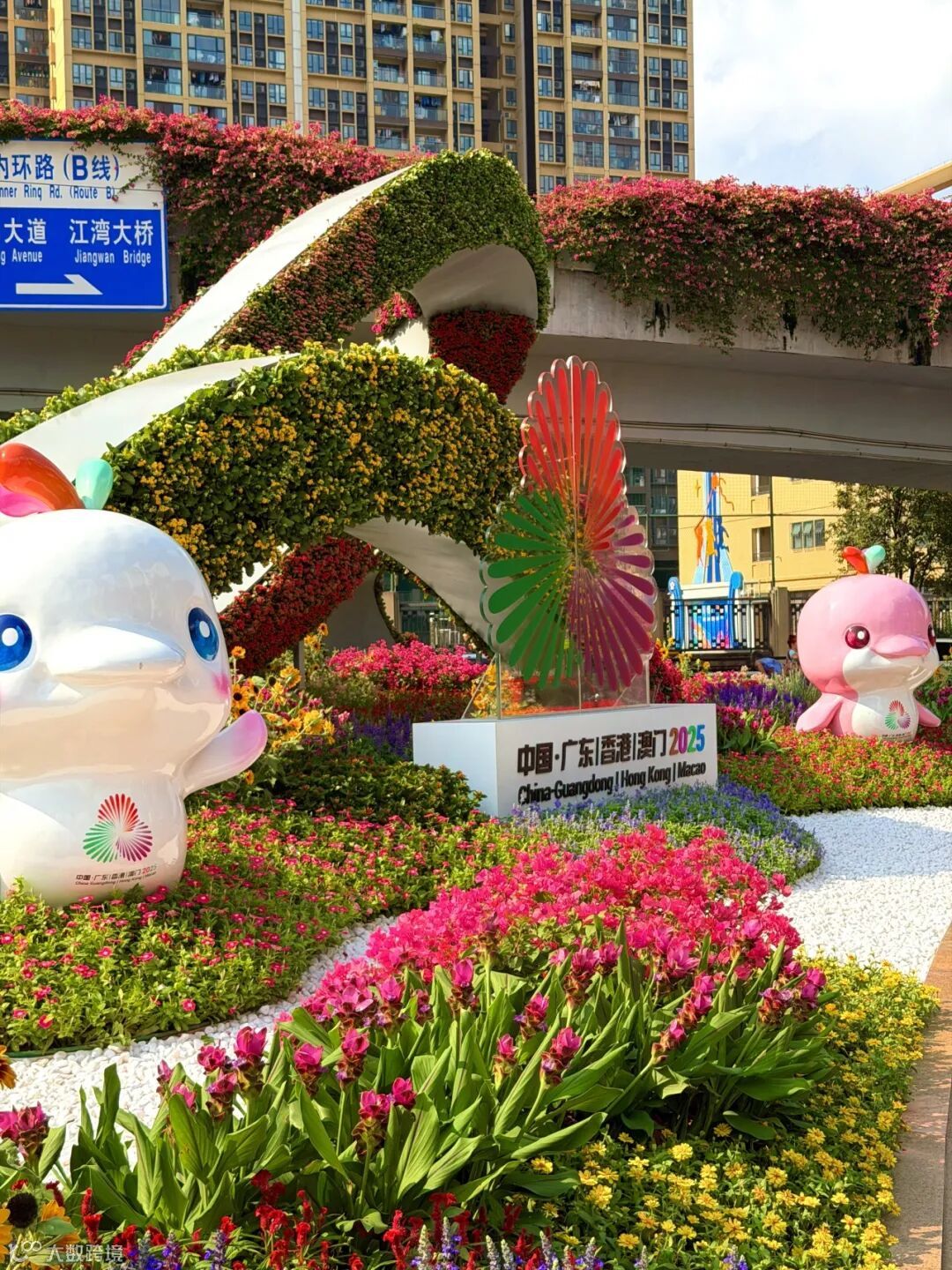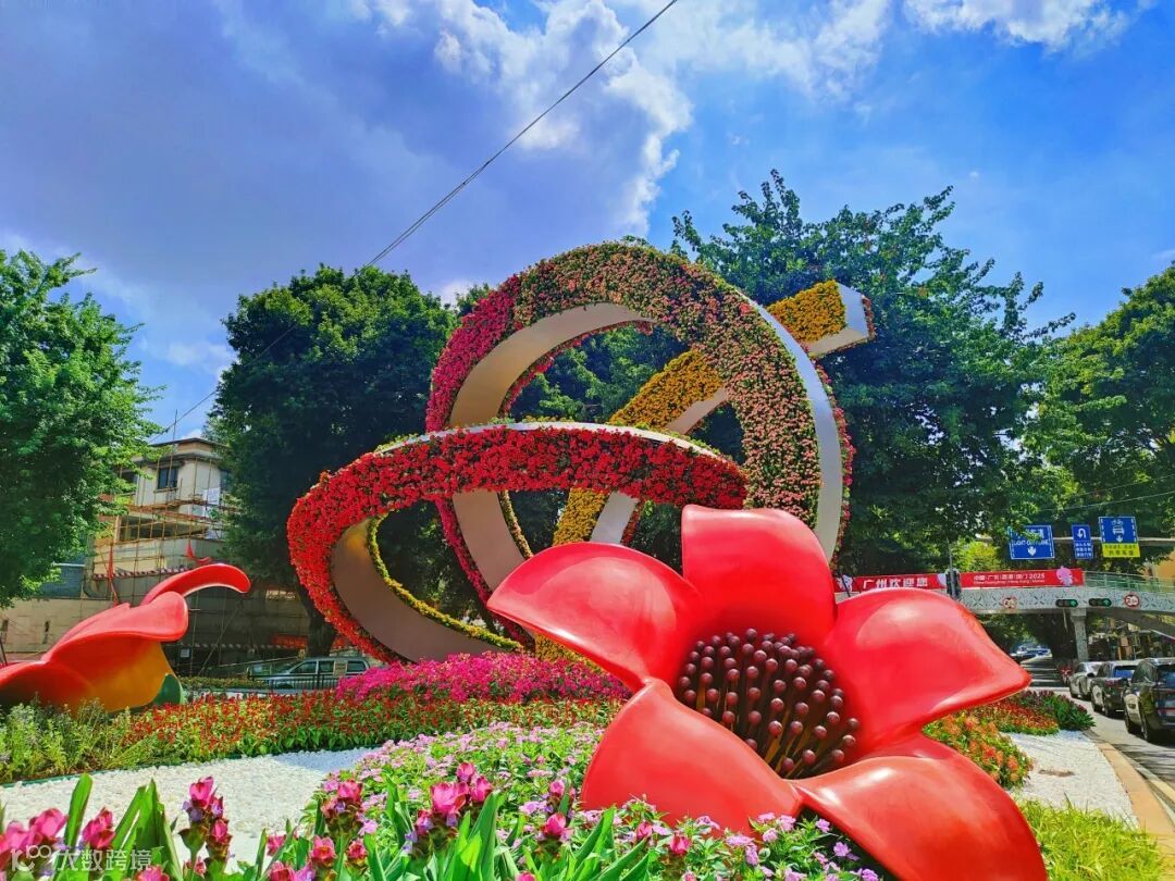 近日,名卉公司精心打造的11处立体花坛与8处特色花艺布置已正式亮相街头,以花卉艺术点缀魅力广州,为即将到来的体育盛会营造浓厚的喜庆氛围。