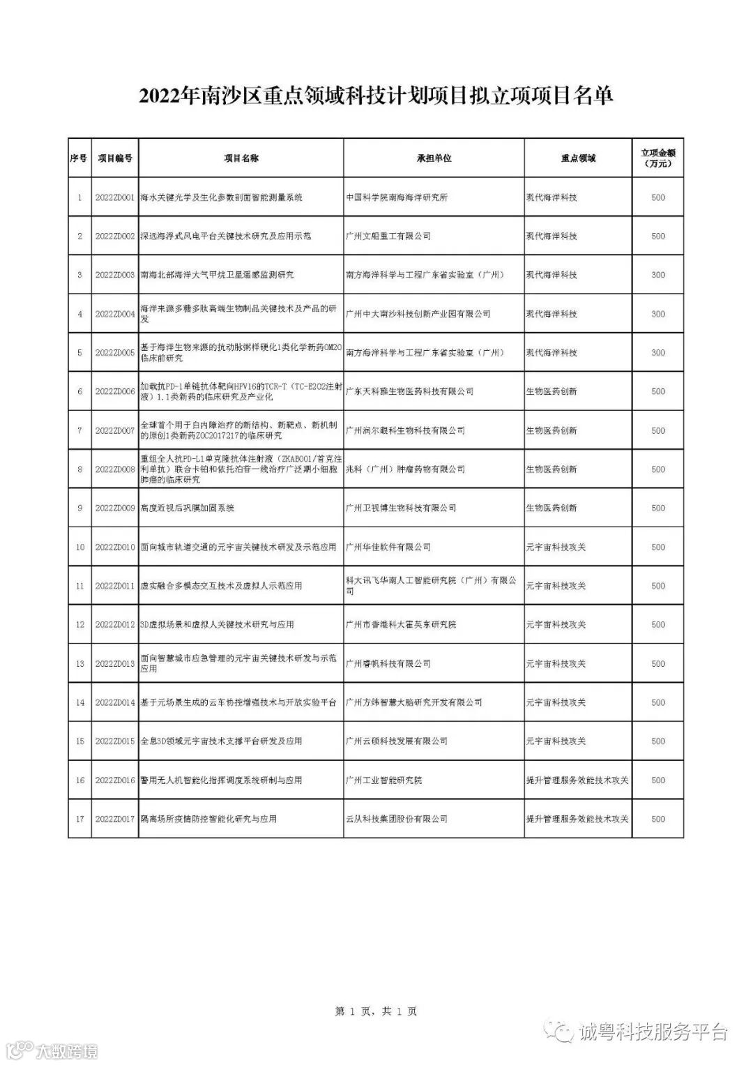 根据《广州市南沙区科学技术经费管理办法》有关规定,现对2022年南沙区科技计划项目拟立项项目名单予以公示。公示时间为2023年3月3日至3月13日。