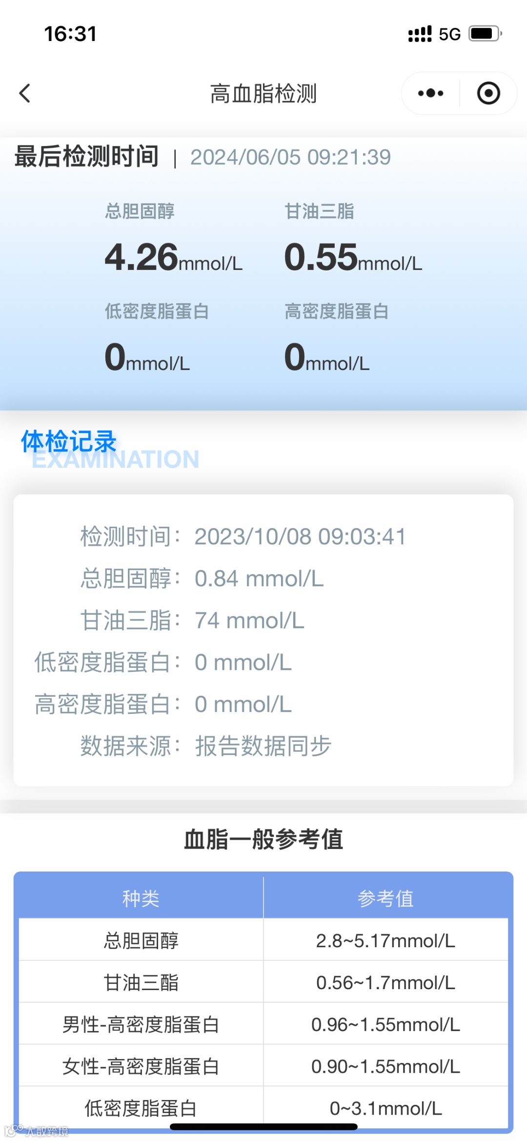 提取出血压、血脂、血糖、尿酸四项数据