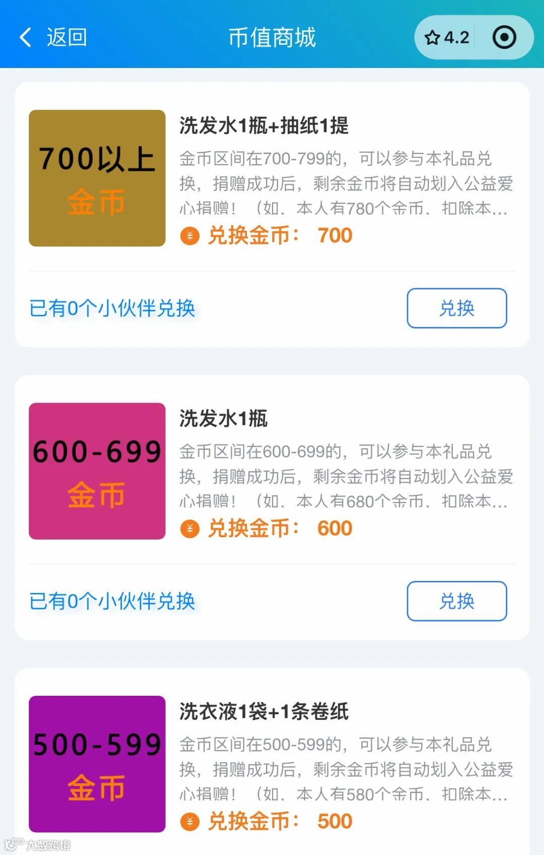 2、不满足50个金币的同仁不能参与本次兑换,金币将自动划到公益捐赠项目