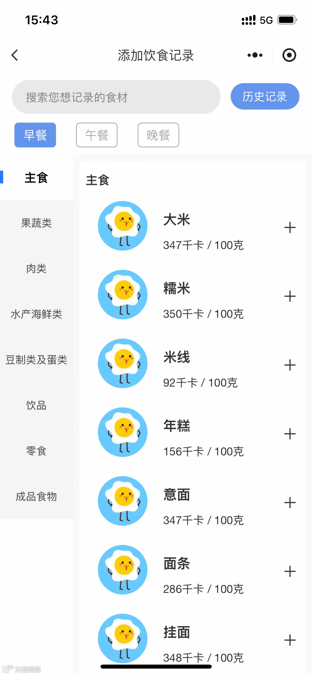 营养摄入:通过平时饮食,可选择自己每餐摄入的食物,对应出现摄入的热量、蛋白质、碳水等数据;