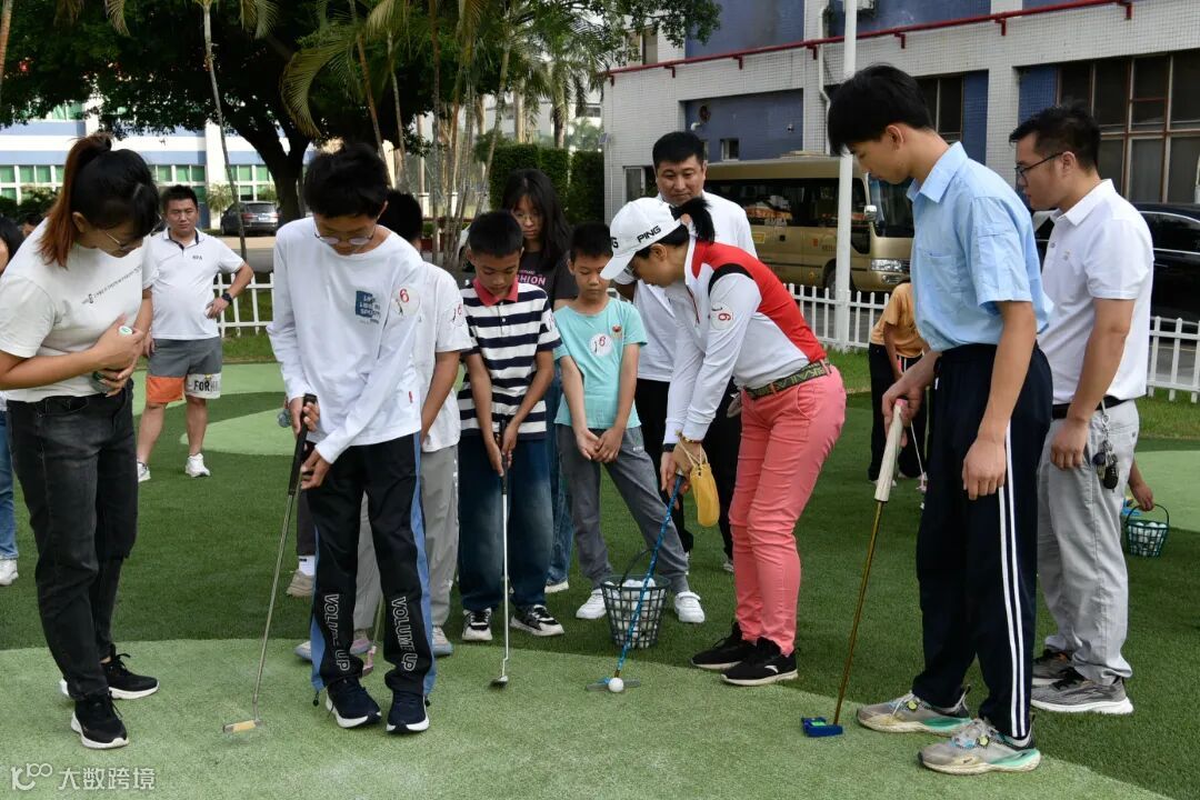 每一组小朋友在教练和引导员的教导下,从握杆、提劲、挥杆等方面进行学习,发球和推杆的教学让小朋友初次体验到了高尔夫的魅力,让小白球在孩子们的眼前,划出一道美丽的弧线。
