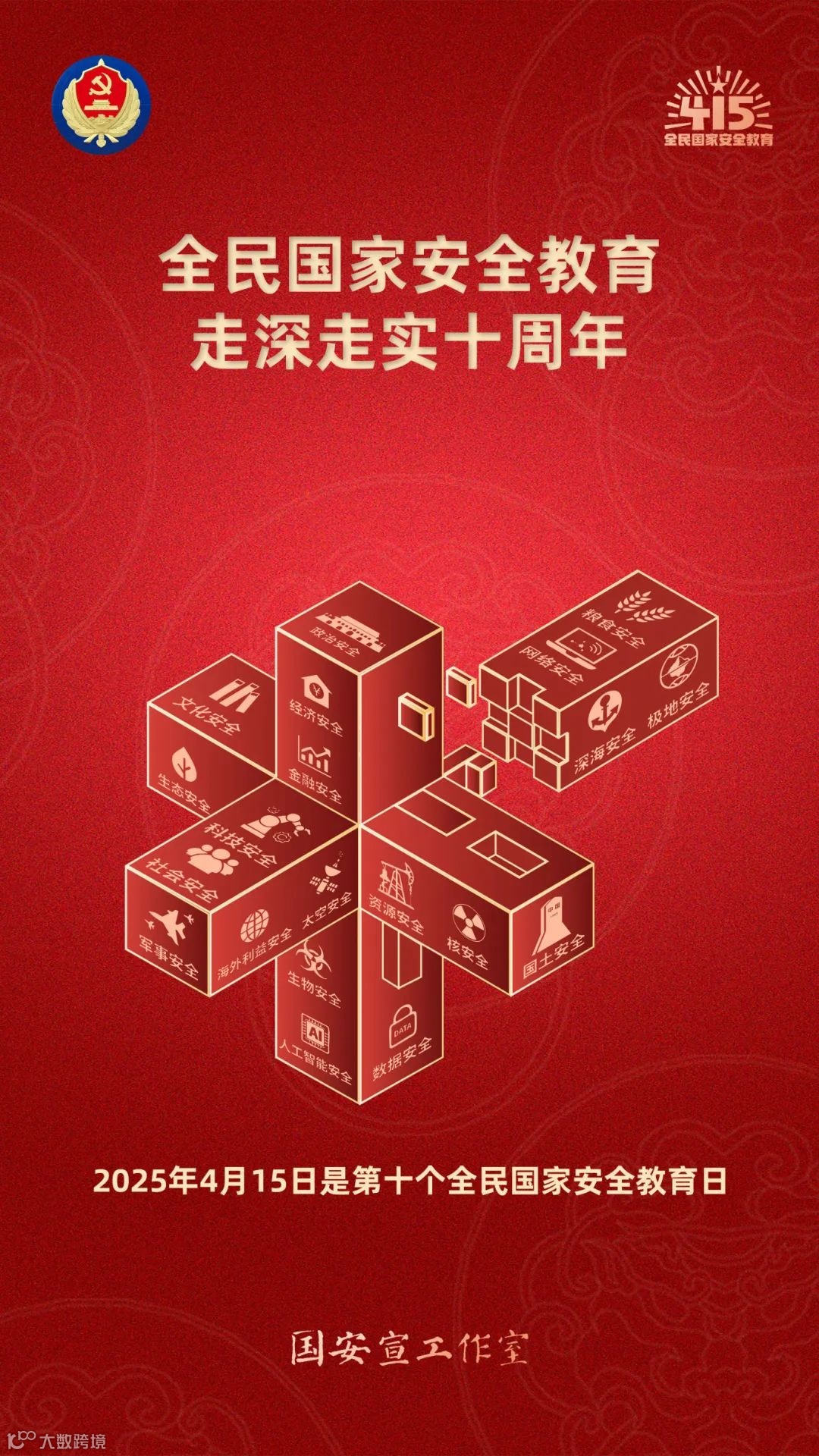 2025年4月15日,是我国第十个“全民国家安全教育日”。主题是:“全民国家安全教育 走深走实十周年”。