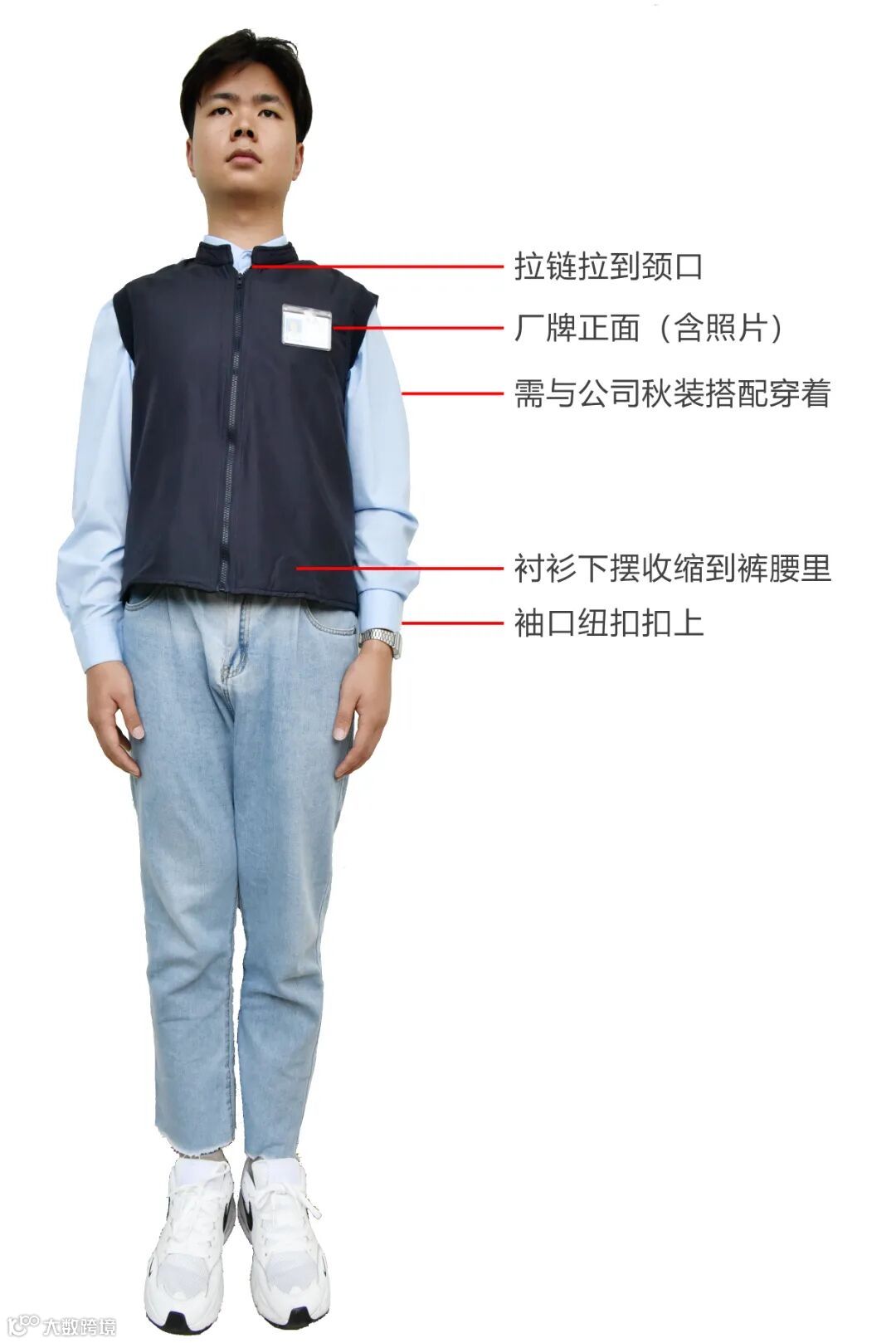 金秋十月到了,随着天气转冷,同仁开始披上外套上班。近期,由于部分同仁上班期间没按要求规范穿着制式工作服,取而穿着便装或公司福利外套。因此,请各位同仁规范穿着: