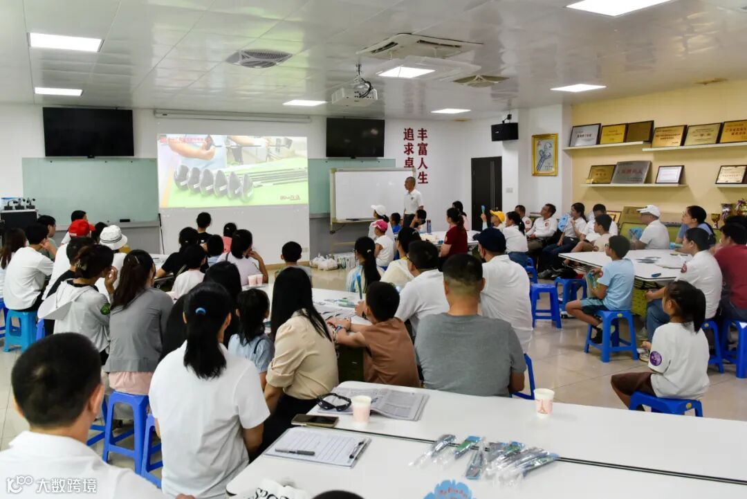 随后,在综合楼简报室,高尔夫社团成员赖明勇课长为各组家庭成员讲授了高尔夫球的相关理论知识,起源、球场设计、球具演变、球场着装等系统性为大家展示了高尔夫球文化,让小孩和家属受益匪浅。