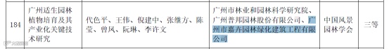 名卉公司下属嘉卉公司联合广州市林业和园林科学研究院、广州普邦园林股份有限公司研发的科技成果《广州适生园林植物培育及其产业化关键技术研究》荣获2022年度华夏建设科学技术奖三等奖。