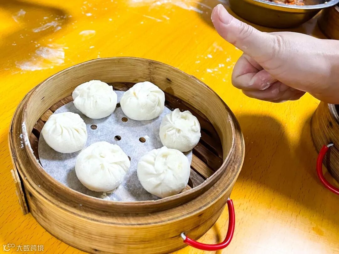 看到热气腾腾、芳香四溢的小笼包