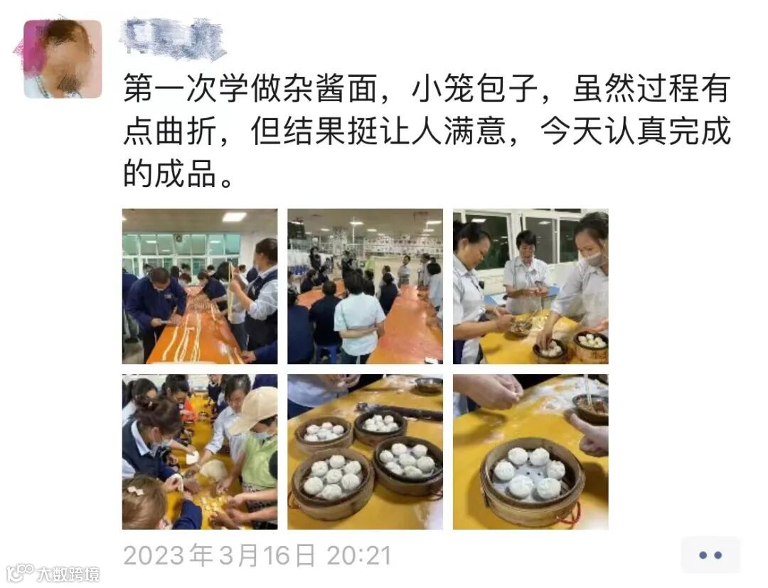 本次课程邀请了食堂师傅现场教学,从和面、揉面、擀皮,再到包馅,在师傅的指导下,小组分工操作,共同完成小笼包和杂酱面两个品种的制作。