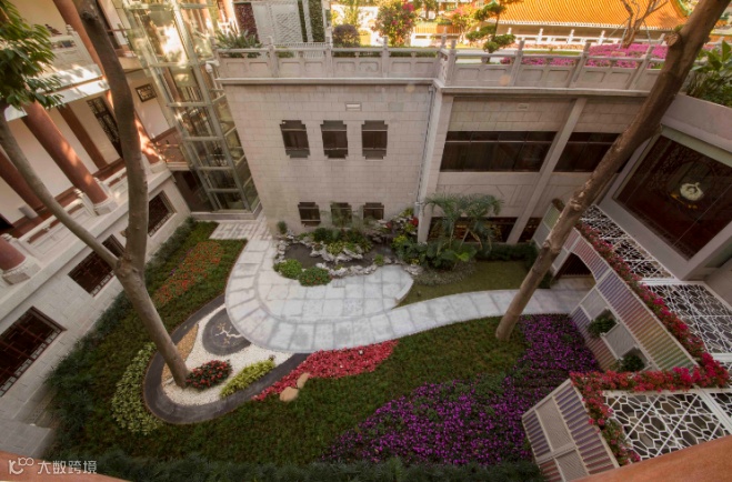 本项目充分落实传统并发扬岭南园林文化,以科学化、专业化模式,坚持规划引领、建管并重、品质提升的原则,全力以赴,克服疫情影响,对市政府1号楼三楼天台、一楼中庭、府前广场、停车场、西侧绿地等原有园建内容进行了更新,对原有时花进行更换,应用先进、高标准的屋顶绿化技术与五星花、四季秋海棠、新几内亚凤仙、夏瑾、八仙花等新优时花,精心打造,严格按照园林技术步骤与措施,使大院的园林绿化与市政府大院1号楼相得益彰,充分展现了广州的山、水、花、城特点。