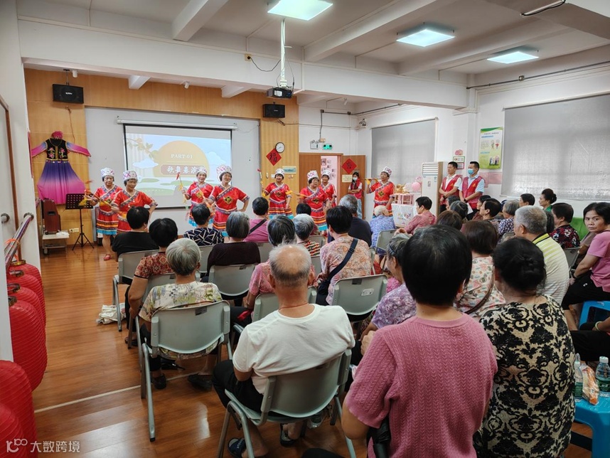 活动伊始,社工介绍了本次活动的流程:文艺汇演、趣味问答和生日祝贺环节。文艺汇演迎开场,张家边张四舞蹈队表演了舞蹈《响铃舞》、张四歌唱班陈叔独唱歌曲《我和我的祖国》,燃起了现场的欢乐氛围。