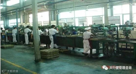 钻床组属一个典型的功能式布局,孤岛作业现象异常突出,工艺不流畅,产生大量的在制品库存,占用大量的存放场地,现场拥挤不堪,而且又无形中放大制造周期。