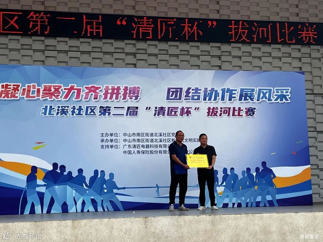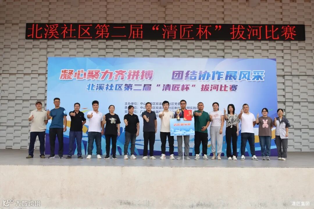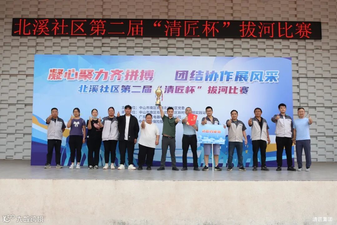 此次拔河比赛由清匠集团冠名赞助,北溪社区组织的第二届“清匠杯”拔河比赛,吸引了社区党委“红色先锋”联建单位、辖区企业和居民组成的16支队伍共计250人参加活动。集团旗下子公司中山清匠电器公司(清匠制氧队)和中山清匠智能制造公司(清匠智能队)积极响应活动,各派出10名员工组建团队方阵参加活动。