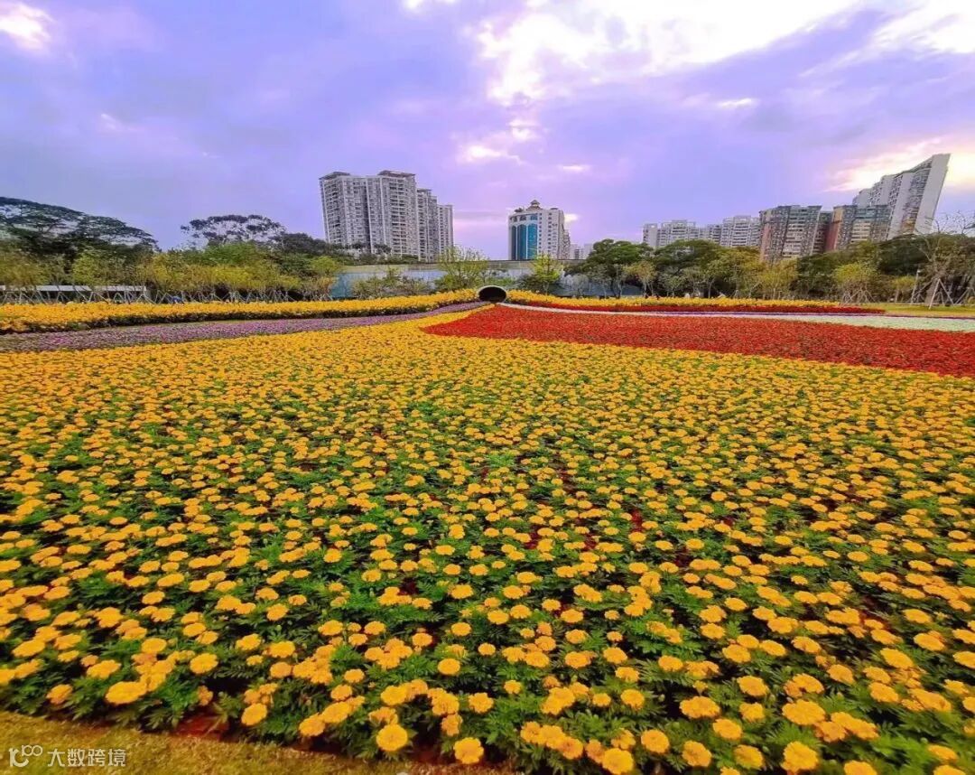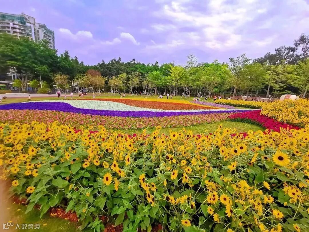 “仙境流水”。金色的向日葵作为背景板,“流水”以多种线条流畅的色带组成:金黄的孔雀草,绯红的四季海棠,雪白的花半边莲,深紫的六倍利,深红的石竹,各色时花如流水般漫溢过来,共同营造一个花花世界的仙境,因此天河公司吸引各方游客前来观赏与游玩。