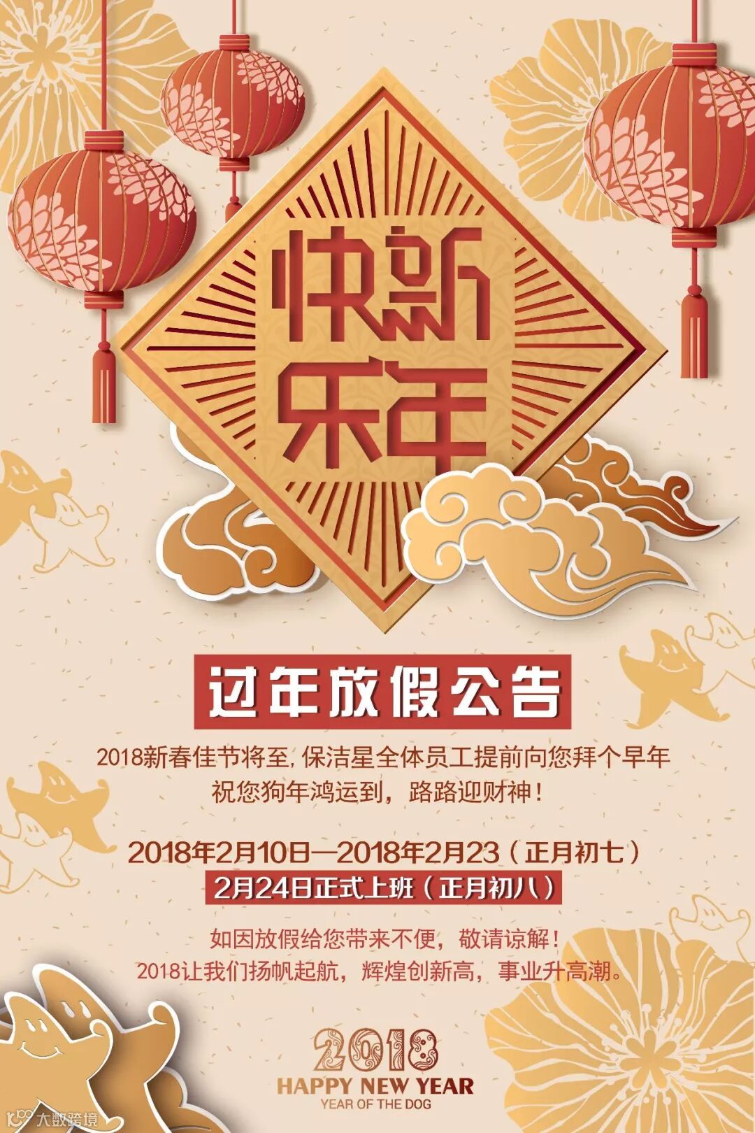 广州市保洁星科技发展有限公司2018年春节放假通知